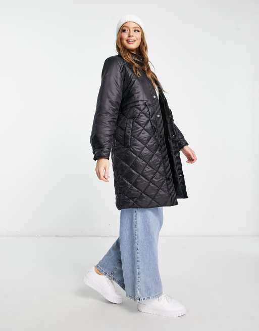 Warm clearance longline coat, Pieces quilted longline coat in black clearance
