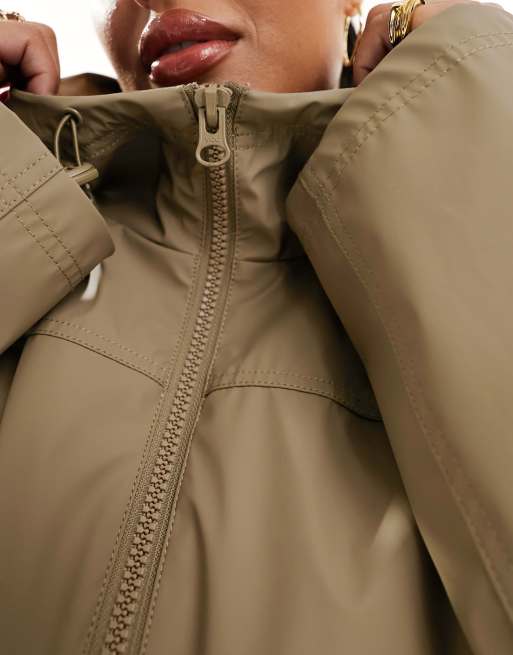 ASOS DESIGN rubberized rain parka coat in mushroom