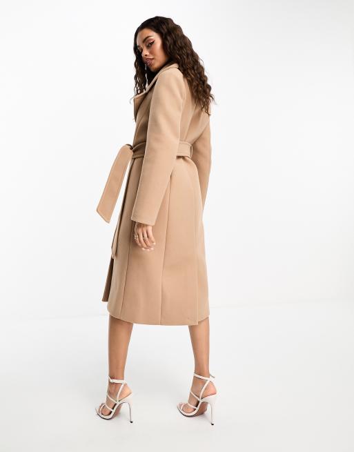 Ever New Petite formal wrap coat with tie belt in camel ASOS