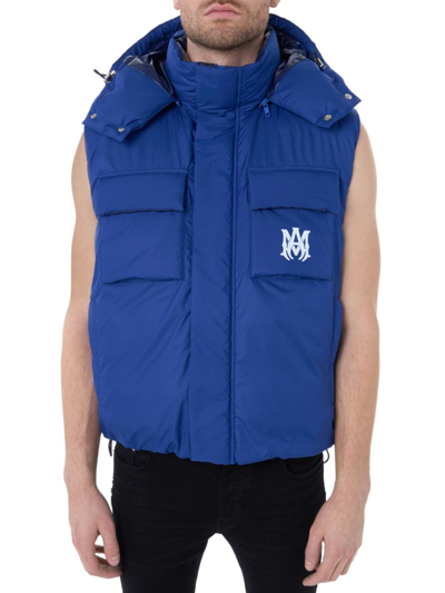 Amiri Quilted Hooded Shell Gilet In Blue And White ModeSens