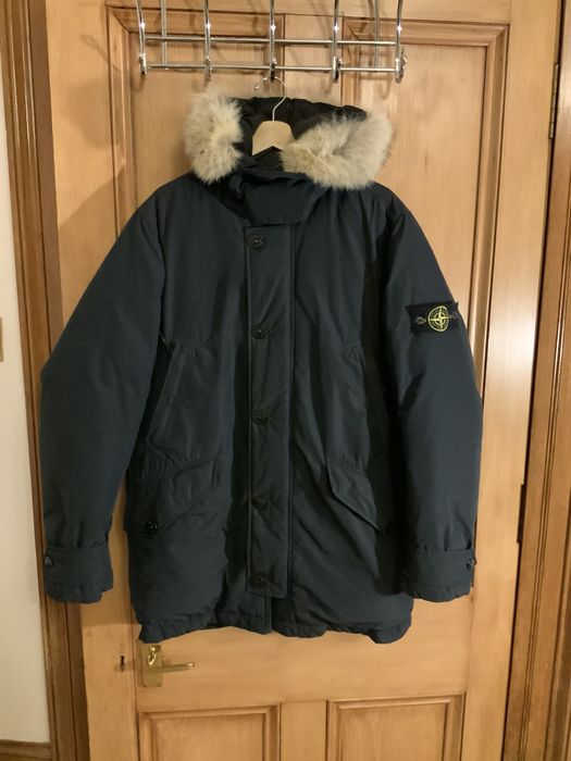 Stone island navy clearance parka, Navy Marina down canvas hooded jacket Stone Island MATCHES UK clearance
