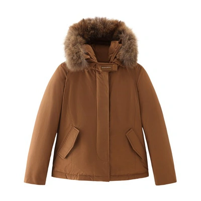 Woolrich Arctic Raccoon Short Parka In Dark Camel ModeSens