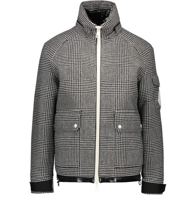 MONCLER Size 44 Black White Plaid Wool Down Filled Jacket