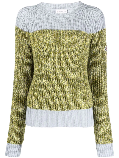 Colorblock Cotton Blend Crewneck Sweater In Green