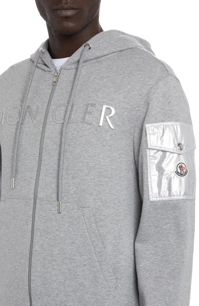 Moncler Raised logo Zip up Hoodie In Light Grey ModeSens