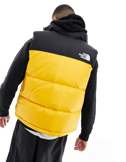 The North Face 1996 Nuptse down puffer vest in black and yellow