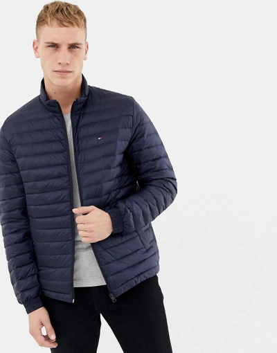 Lightweight Down Packable Puffer Jacket Flag Logo In Navy Navy