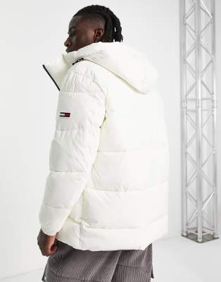 Tommy Jeans asymmetric zip hooded puffer jacket in off white ASOS