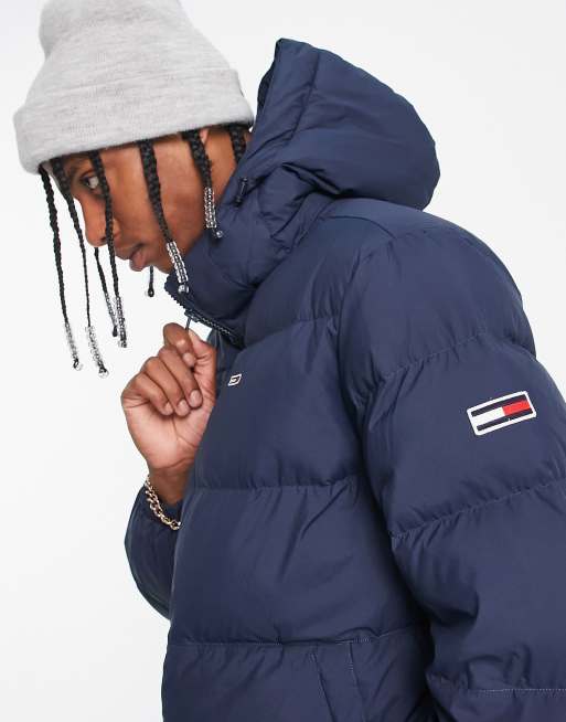 Tommy clearance hooded parka, Tommy Jeans essential polyester hooded puffer jacket in navy clearance
