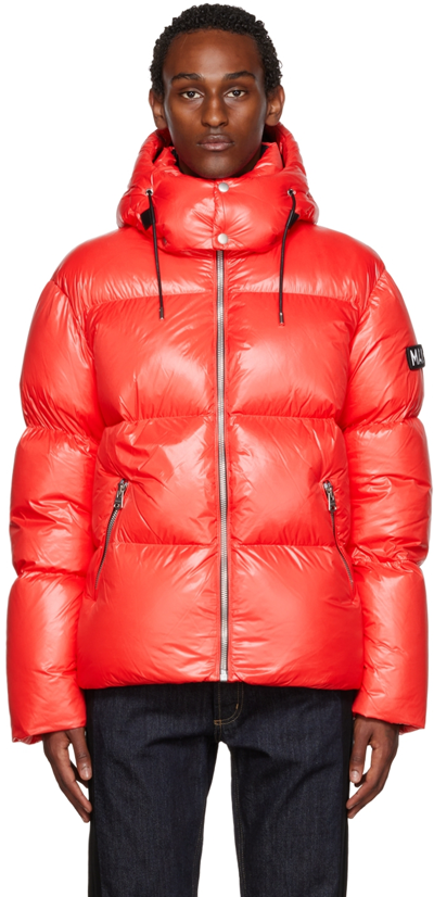Womens Mackage red Longline Hooded Puffer Jacket Harrods UK
