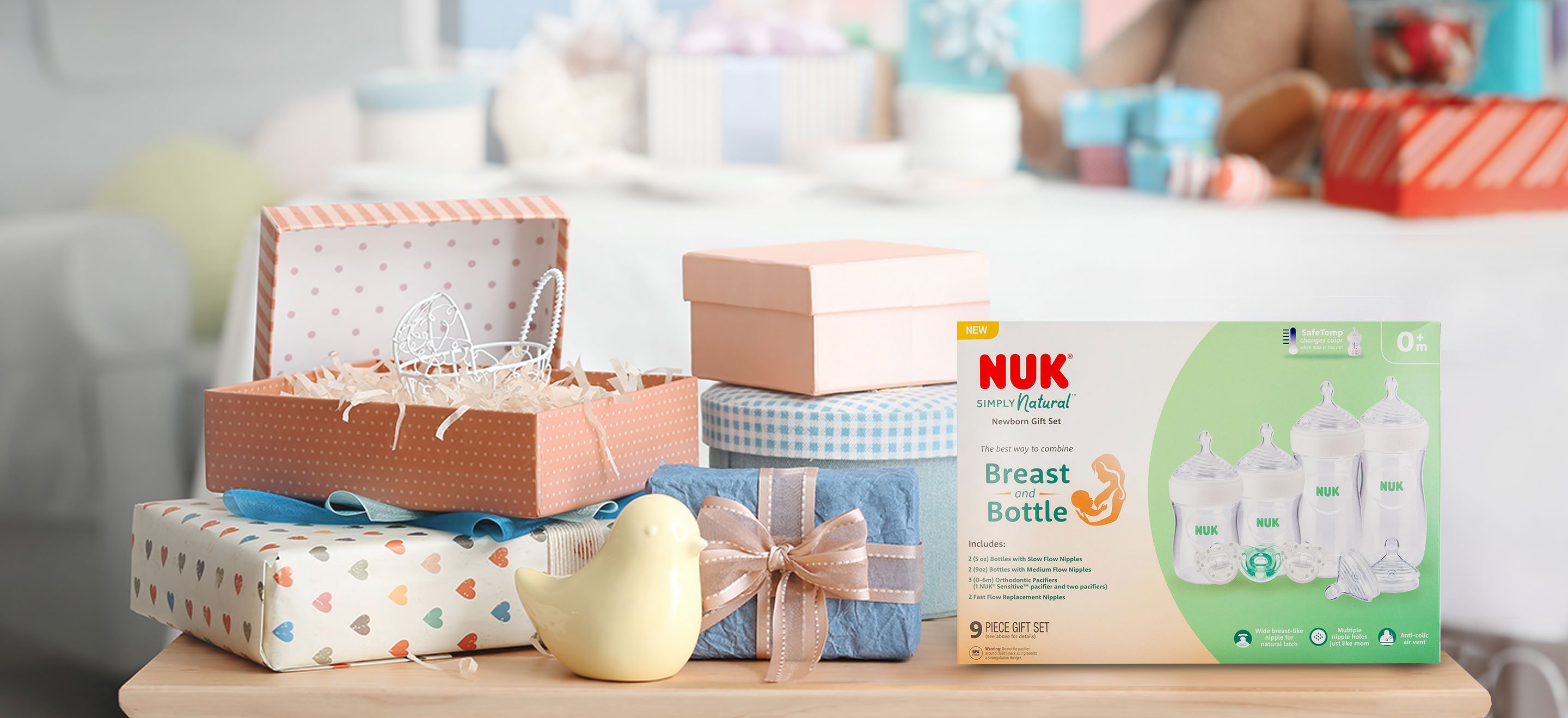 NUK Simply Natural Baby Bottles with SafeTemp Gift Set Includes 4 Bottles 3 Pacifiers and 2 Replacement Bottle Nipples