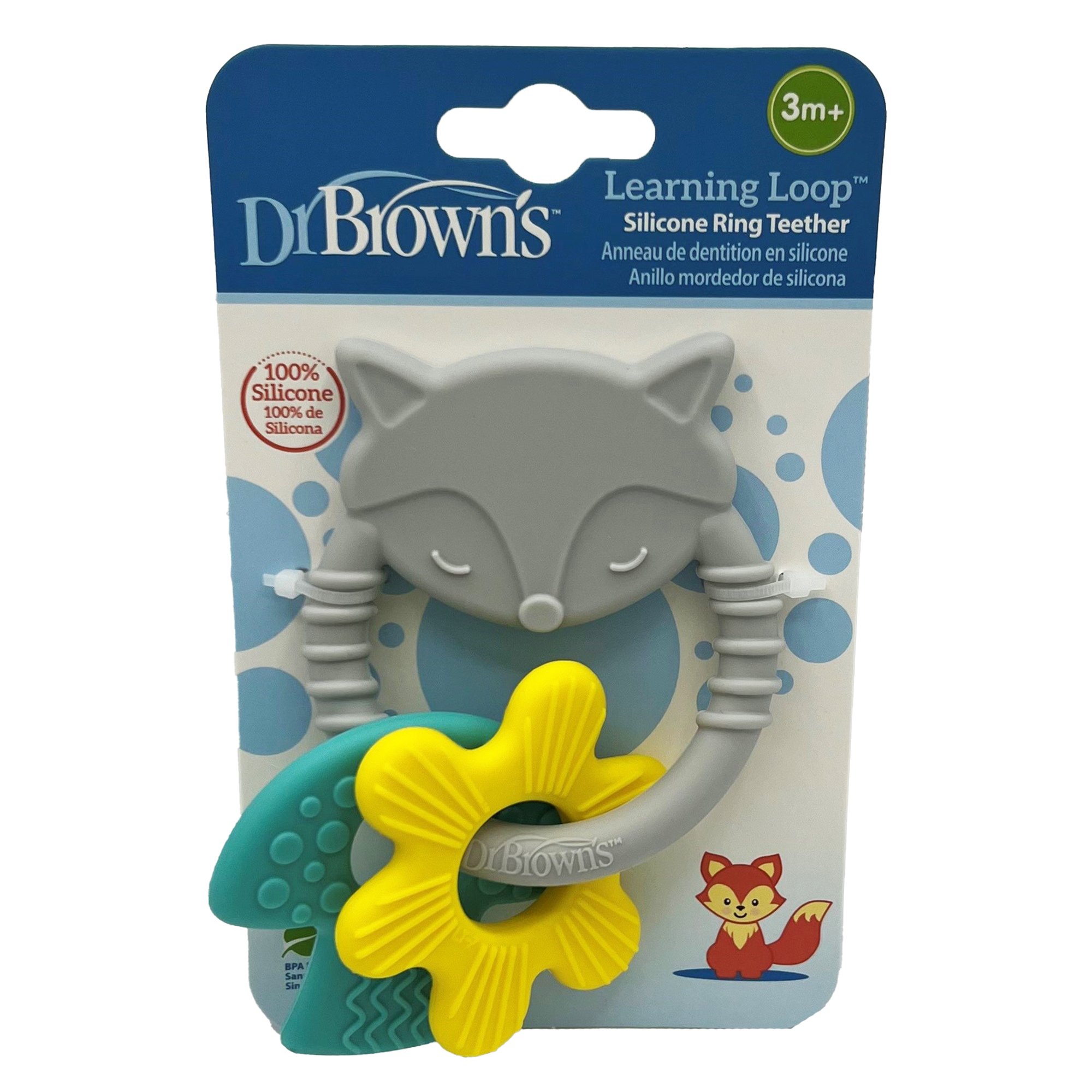 Dr. Brown s Learning Loop Fox Baby Teether Ring with Multiple Shapes Textures Soft 100 Silicone BPA Free 3m