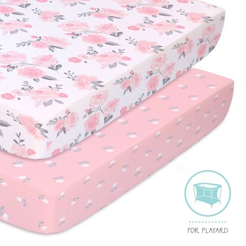 The Peanutshell Fitted Playard Sheets Pink Roses And Ditsy
