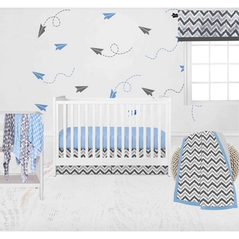 Boys cot bed clearance sheets, Bacati Ikat Dots Zebra Blue Grey Boys 10 Pc Crib Set With 2 Crib clearance