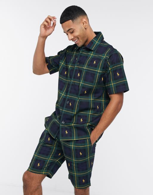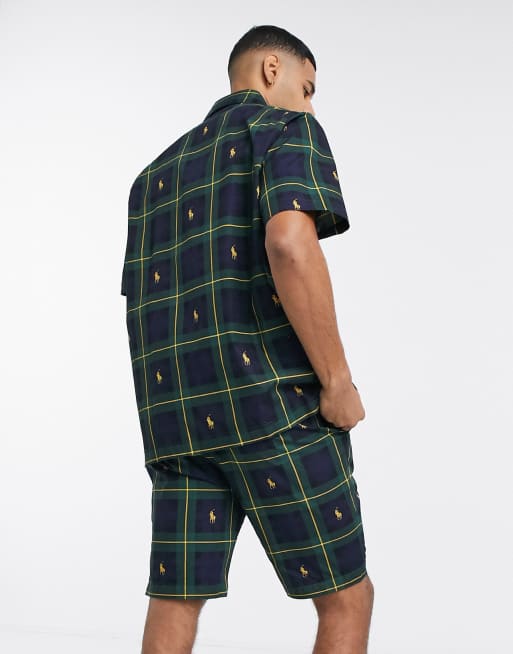 Polo Ralph Lauren Set met T shirt en short in groen en gele ruiten en logo op de borst