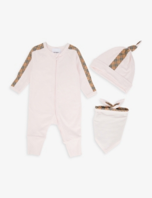 BURBERRY White 3 Piece Babygrow Hat Bib Gift Set Shop kids
