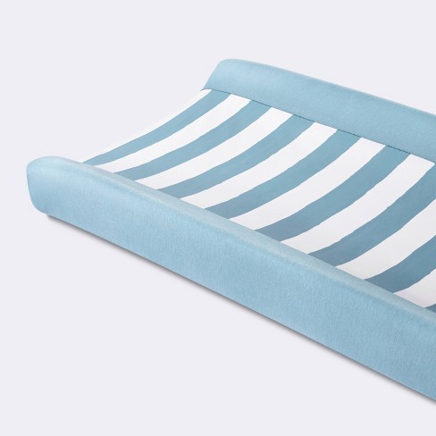 Wipeable Changing Pad Cover Blue And White Stripes Cloud