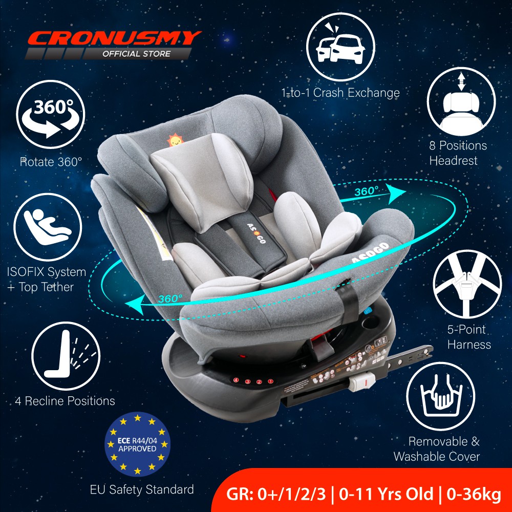 ASOGO 360 Isofix Top Tether Carseat 0 11 Years Old Safety Car