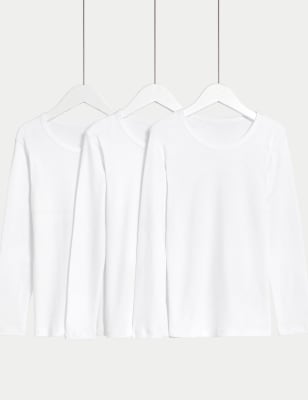 3pk Pure Cotton Long Sleeve Vests 2 14 Yrs M S Collection M S