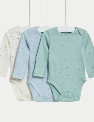M&s baby long clearance sleeve vests, 3pk Pure Cotton Stars Bodysuits 6 lbs 3 Yrs clearance