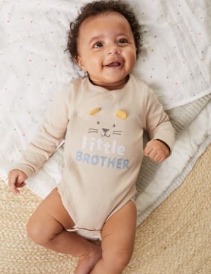 Pure Cotton Little Brother Slogan Bodysuit 7lbs 9 Mths M S IT