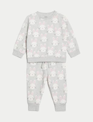M and s clearance baby pyjamas, 2pc Cotton Rich Bunny Print Outfit 0 3 Yrs clearance