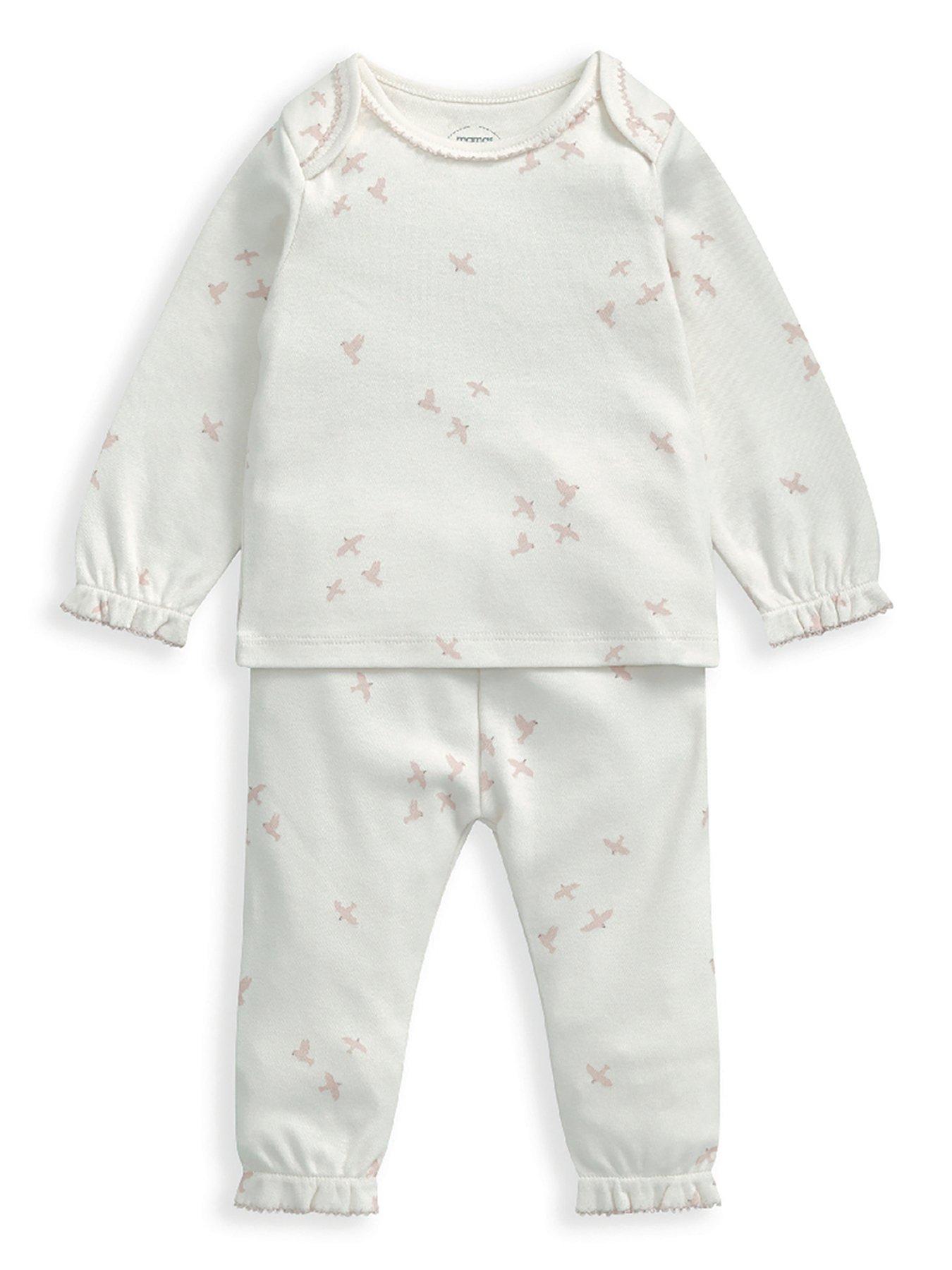 Mamas Papas Baby Girls Flocking Bird Jersey Pyjamas Cream