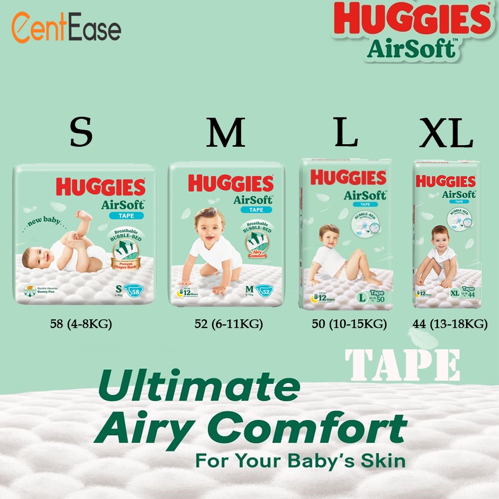 Huggies Air Soft Tape Baby Diapers S M L XL Bubble Bed Tech