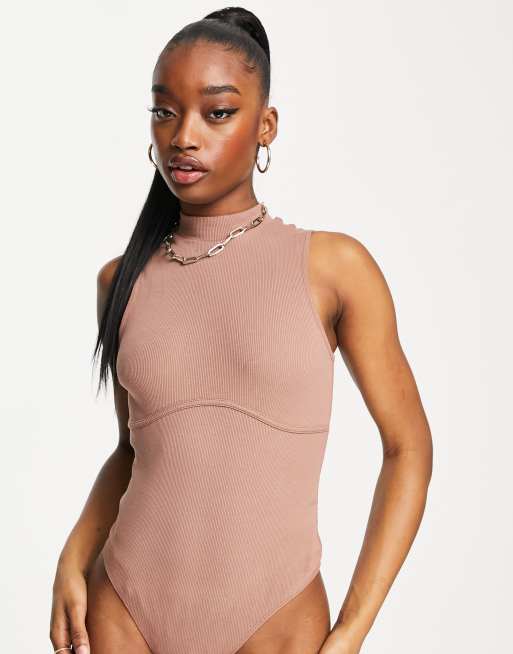 ASOS DESIGN high neck bodysuit with bust seams in neutral ASOS