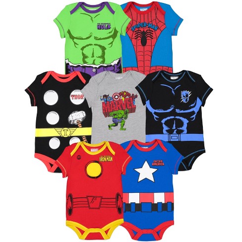 Avengers clearance baby onesie, Marvel Avengers Black Panther Captain America Iron Man Baby 7 Pack clearance