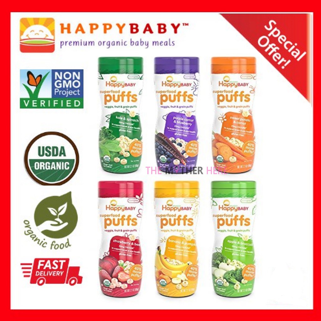 Happy puff baby clearance food, BUY 3 FREE SHIPPING Happy Baby Organic Happy Puff 60 gm clearance