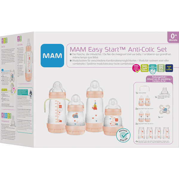 MAM Easy Start TM Anti Colic Starter Set 0 maanden 2 delige set MAM Easy Start 130 ml en 260 ml met MAM Start Nan fopspeen 0 2 maanden roze