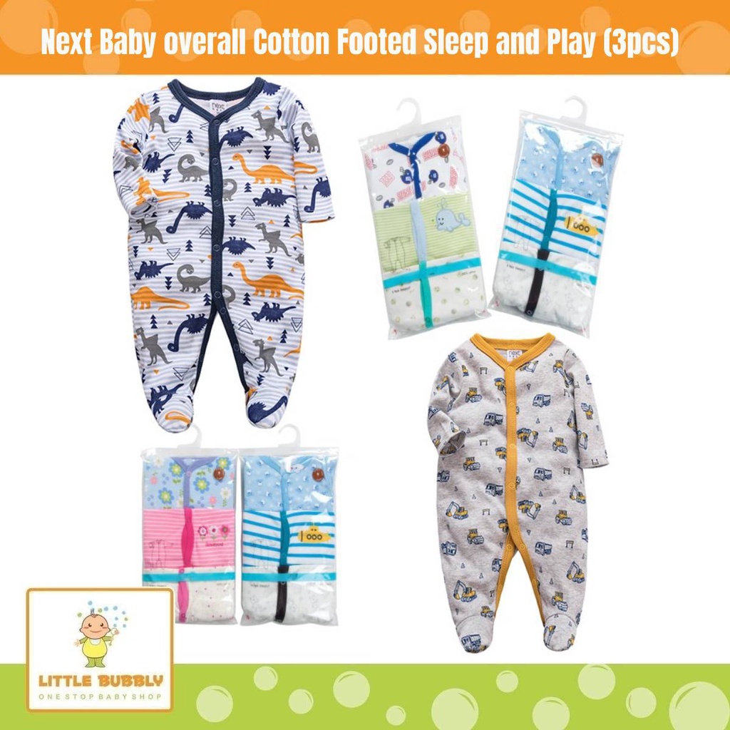 SALE Next Baby overall 3 Pack Cotton Footed Sleep and Play Girl