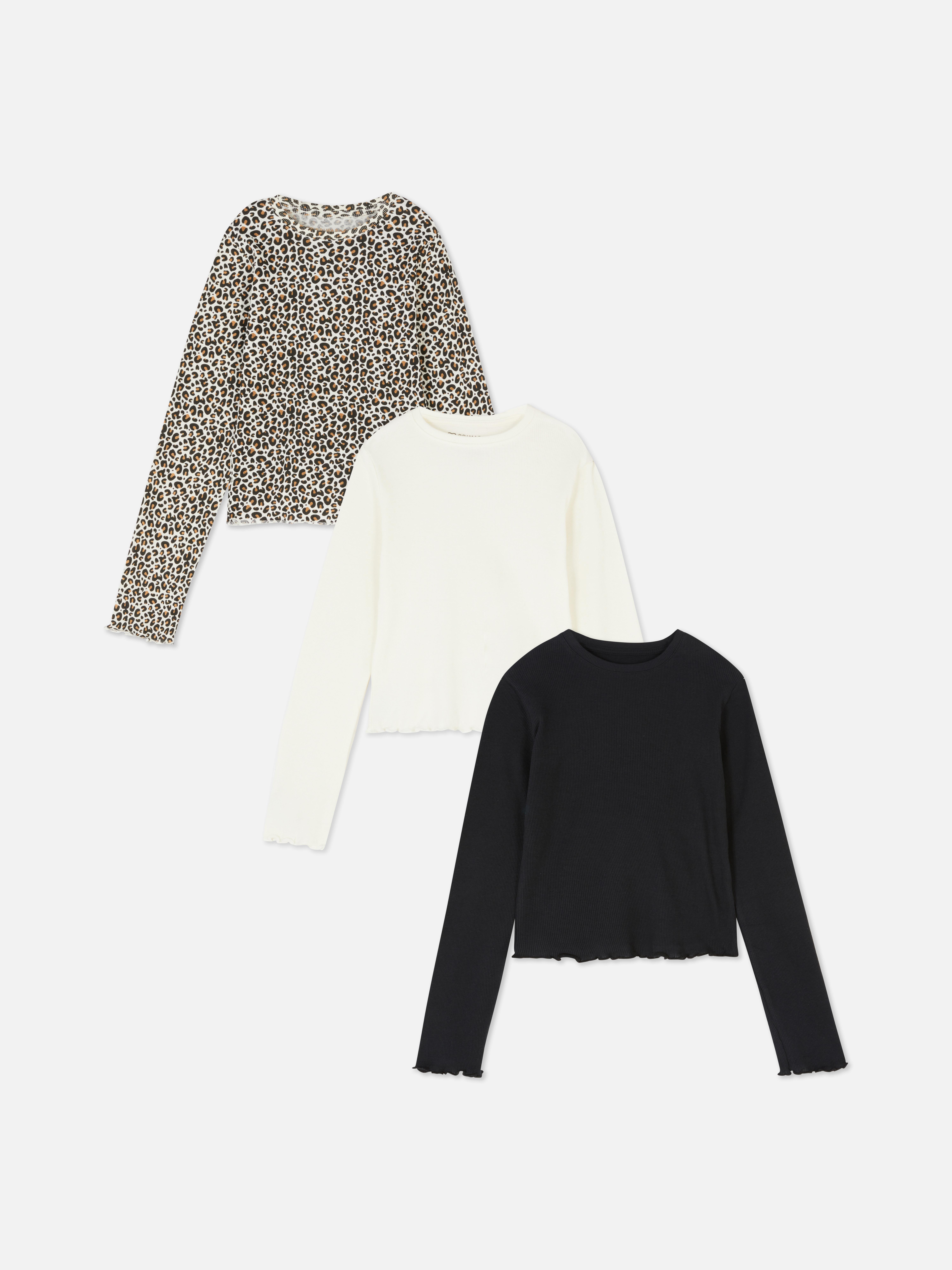 Girls Tops T Shirts Ribbed Multipack Long Sleeve Tops