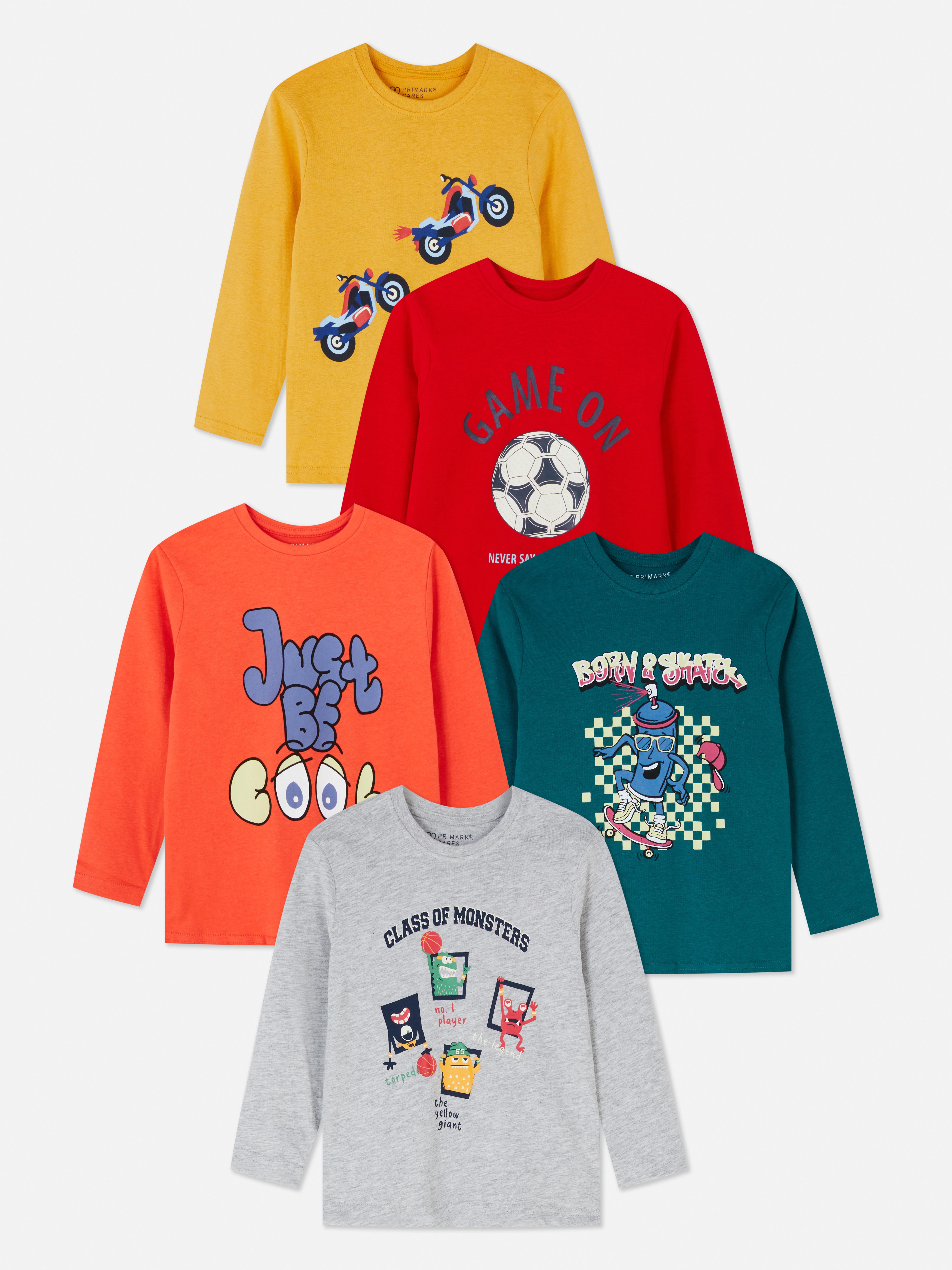 Boys Red 5pk Printed Long Sleeve T shirts Primark