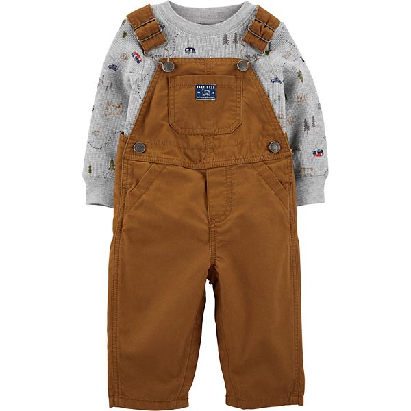 Baby Boy Carter s 2 Piece Camping Tee Khaki Overalls Set