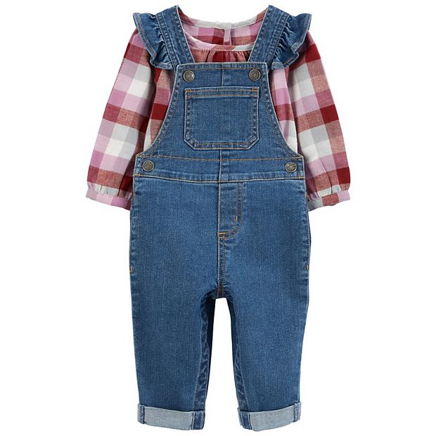 Baby Girl Carter s 2 Piece Plaid Top Denim Overalls Set