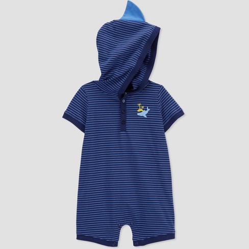 Rompers carters clearance, Carter s Just One You Baby Boys Striped Shark Hooded Romper clearance