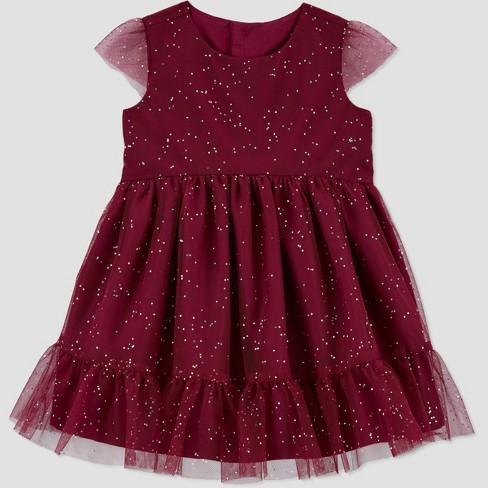 Carter s Just One You Baby Girls Glitter Dress Burgundy Target