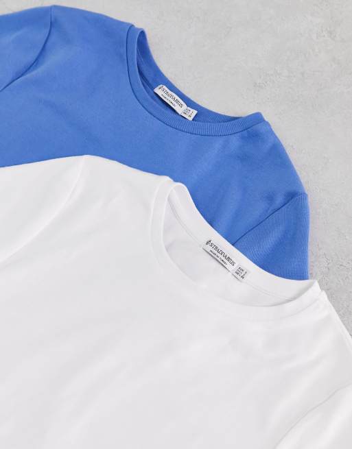 Stradivarius Set van 2 basic baby T shirts in blauw en wit ASOS