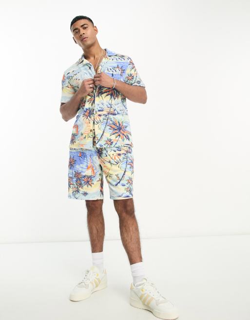 Polo Ralph Lauren Short van badstof katoen met Hawaiiaanse print in blauw deel van co ord set