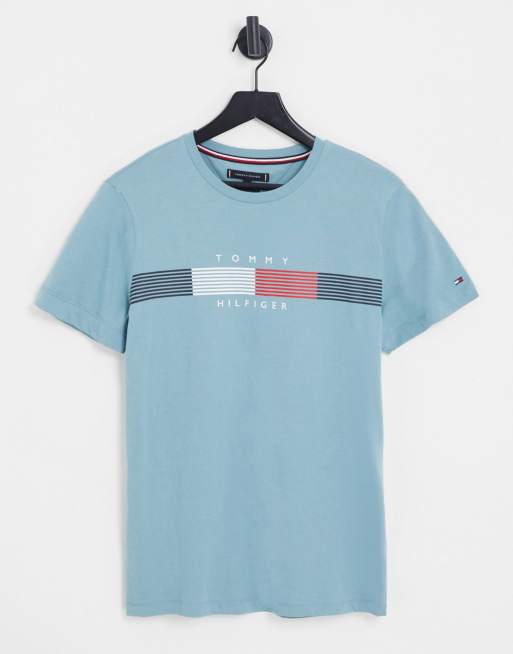 Tommy Hilfiger T shirt van katoenmix met logo op streep over de borst in lichtblauw LBLUE