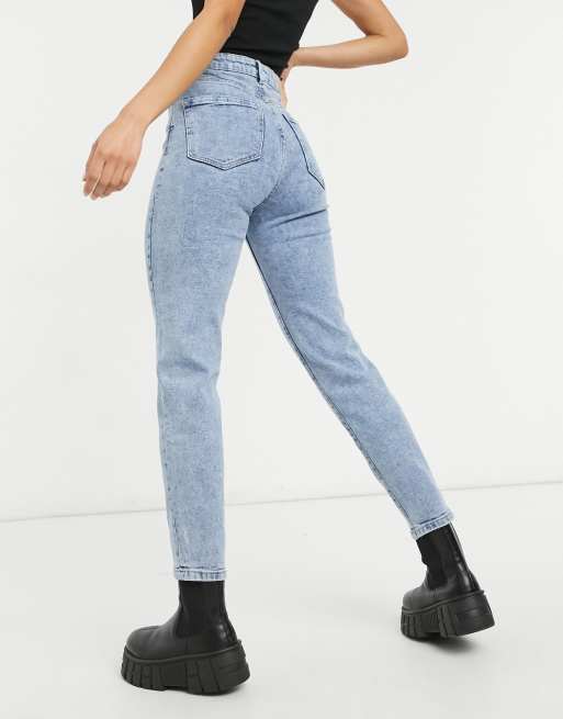 Stradivarius Tall Smalle mom jeans met stretch in blauw ASOS