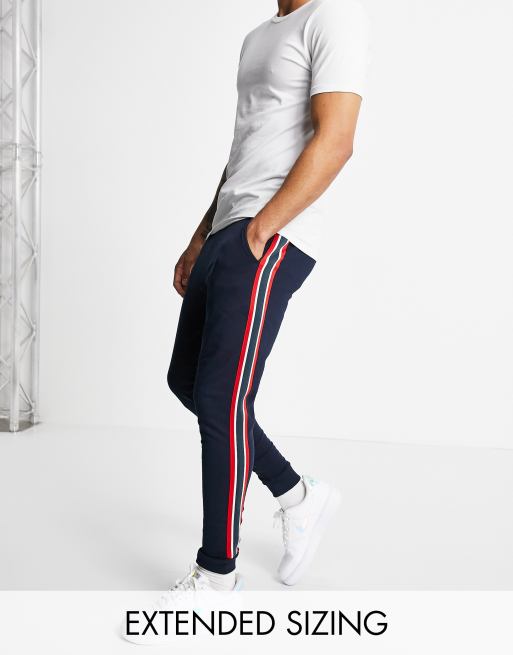 ASOS DESIGN skinny joggers with side stripe in navy