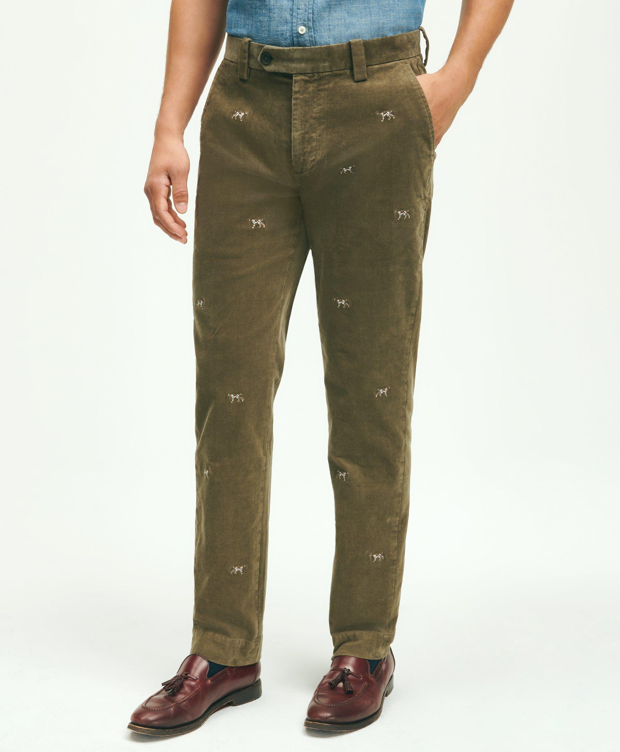 Stretch Cotton Fine Wale Corduroy Embroidered Pants