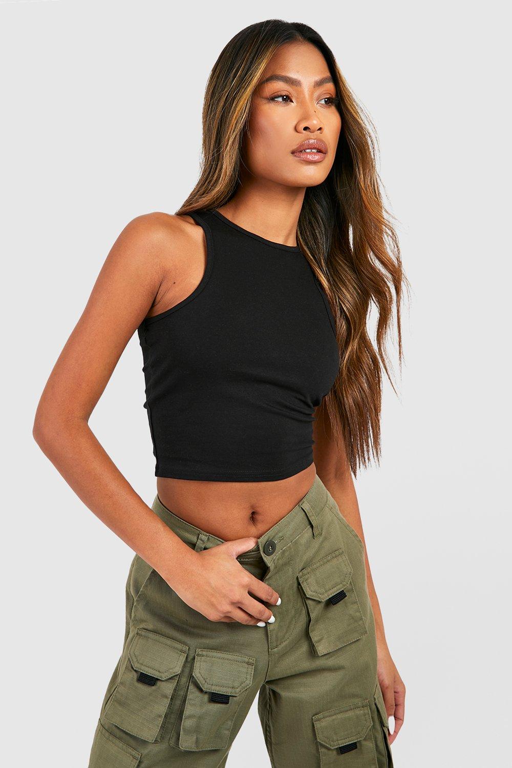 Buy Green Cotton Plain High Neck Crop Top With Baggy Cargo Pant