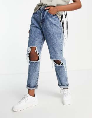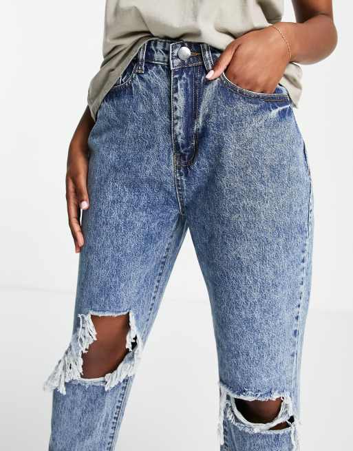 I Saw It First Distressed jeans met rechte pijpen in blauw ASOS