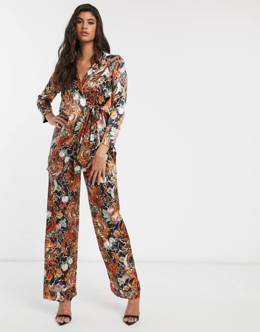 New Girl Order relaxed trousers in dragon floral satin co ord