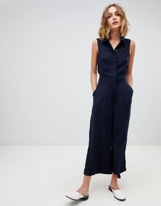 Warehouse jumpsuit clearance, Warehouse tailored button front jumpsuit in navy clearance