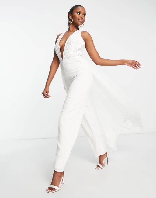 Vit jumpsuit clearance, Starlet Vit jumpsuit med djup urringning verlager i tyll clearance